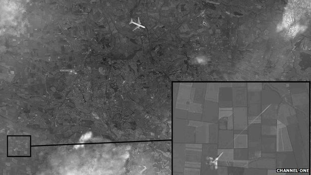Der kritischen Web-Öffentlichkeit hielt dieses Fake nur wenige Minuten stand, dann war es komplett zerpflückt. Es stimmte alles nicht: Es gab keinen Satelliten im Orbit, der dieses Foto hätte machen können, und wenn stimmen alle Größenproportionen nicht. Das Wetter auch nicht, denn es war bewölkt (ein Argument übrigens, mit dem ein ukrainisches Pseudobeweisfoto bei blauem Himmel widerlegt wird). Die Felder sind nicht im Hochsommer und die charakteristischen Wölkchen und Bestellungsmuster finden sich auf Fotos von Googlemaps und anderen Kartenseiten – allerdings aus den Jahren 2011-12. Auch die Boeing 777 ist sicher aus einer Bildsuche „Boeing von oben“ einer russischen Suchmaschine entnommen, charakteristisch fehlt der linken Tragfläche die obere Ecke. Dazu ist die Lokalisierung komplett falsch. Wir sehen zwischen Jet und Boeing den charakteristischen Flughafen von Donetsk, die Stadt dann östlich davon. Das ist über 50km von der Absturzstelle entfernt.